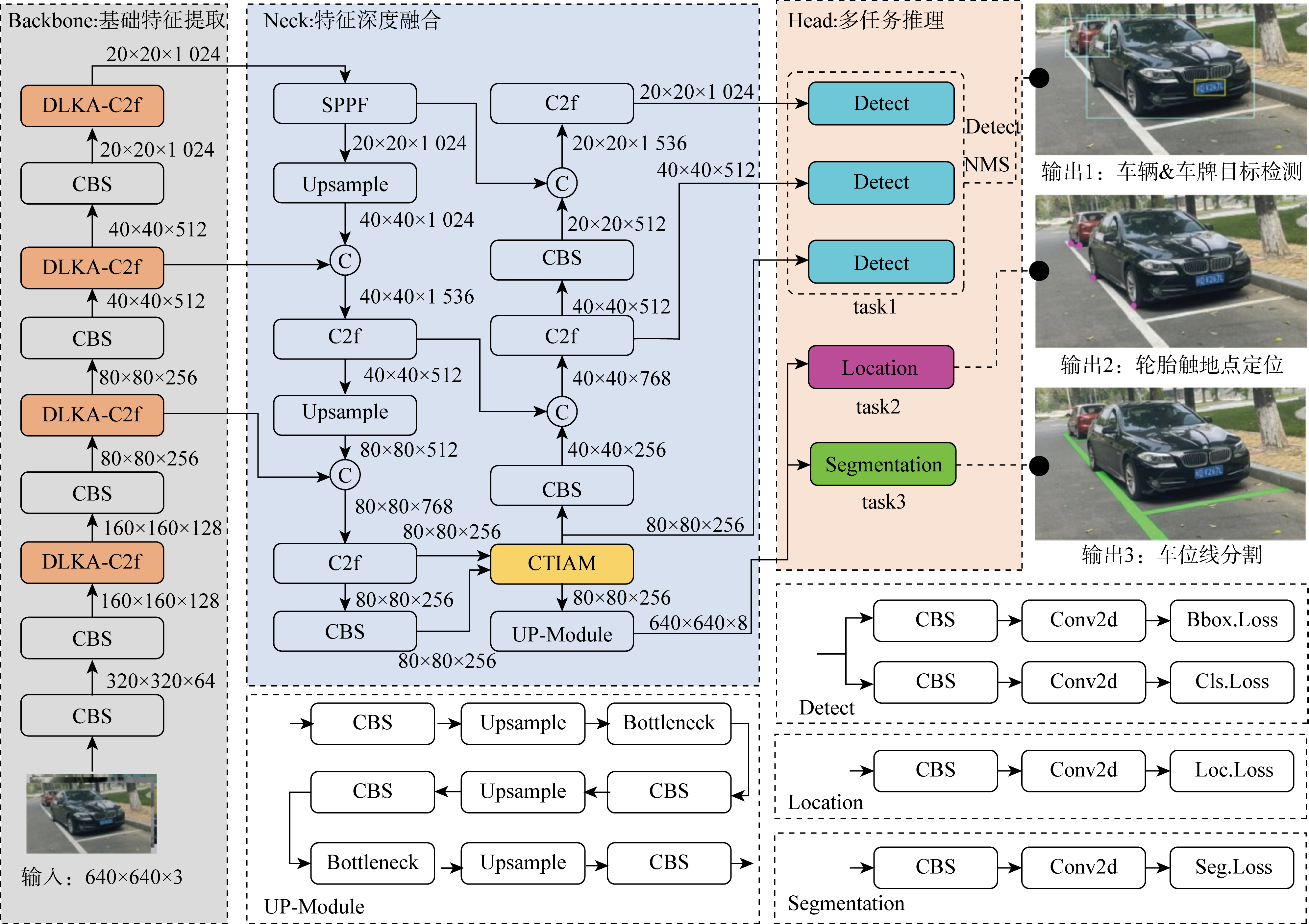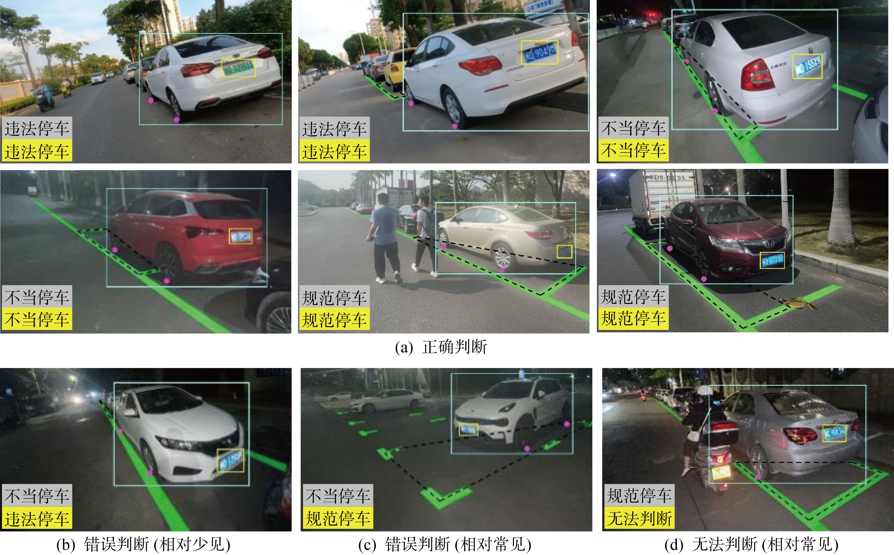 查处车辆违停是城市交通管理的重要内容.鉴于人工执法耗时耗力、定点监控抓拍覆盖范围有限等问题,探索更为灵活高效的自动检测方法具有现实意义.提出一种适用于路面移动载体的非停留式、一次完成的巡航检测技术.在平视且随机拍摄角度条件下采集并构建车辆违停图像数据集XMUT-VPI,为研究提供数据基础.通过构建多任务神经网络(MTPN)作为编码器,提取违停判断所需的关键要素信息;借助自主设计的可变形大核特征聚合模块(DLKA-C2f)和跨任务交互注意力机制(CTIAM),实现了90.3%的最高目标平均检测准确率、4.4%的最小轮胎触地点平均定位误差,以及78.5%的次优车位线分割平均交并比精度.设计高效解码器来进一步提取车位线骨架特征,拟合主车位可视区域,匹配目标车辆,解析轮胎触地点与车位的位置关系,进而实现对违法停车、不当停车和规范停车3类典型行为的判定.实验结果表明,在各类复杂干扰情况下,该算法的综合准确率达到98.1%,领先现有主流方法,可为违停的全自动路面巡航治理提供技术支持.