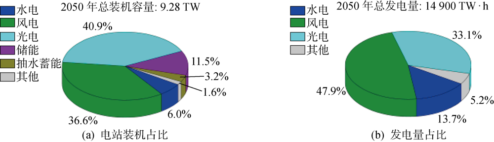 | 图6 2050水平年中国各类电站装机占比及发电量占比 |