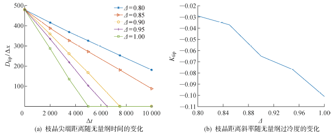 图6 枝晶尖端距离及枝晶距离斜率变化 |