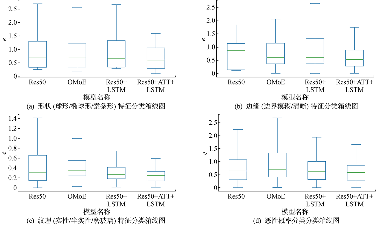 | 图4 仅使用结节CT图像进行多任务分类的ADE结果箱线图 |