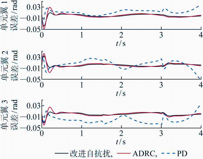 (2) 设计了自抗扰控制器对折展机翼的运动轨迹进行跟踪,并实现振动的快速抑制.