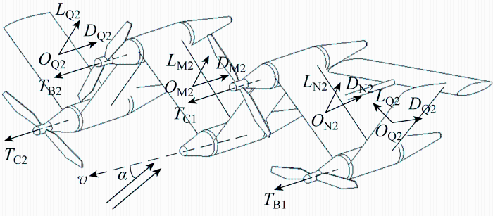 式中:G w E 、G b E 分别为各单元翼或机舱在惯性系下的重力;F w w 为单元翼w 在其局部体坐标系下的气动力;T b b 为机舱b 在其局部坐标系下的螺旋桨推力.