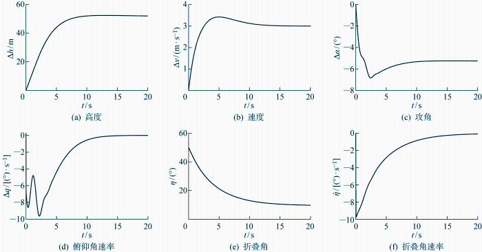 关于垂直起降飞行器姿态稳定控制问题,国内外学者提出许多相关的控制方法,如比例积分微分(proportion integral differential, PID)控制[18 ] 、有限时间自适应控制[19 ] 、滑模控制[20 ] 、预测控制[21 ] 、最优控制[22 ] ,这些控制方法对于未知的非线性系统具有优势,但所针对的对象都是固定翼垂直起降飞行器,并未考虑结构变形对控制的影响,并且这些方法在非线性情况下会非常复杂.