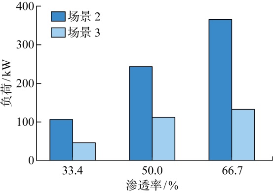 | 图6 20%违约率下不同渗透率电动汽车未充电量双场景对比 |