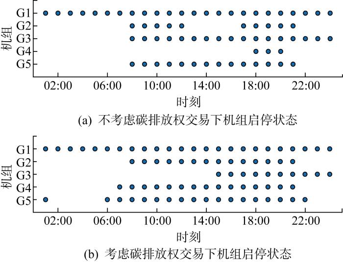 考虑碳排放权交易前后机组启停状态