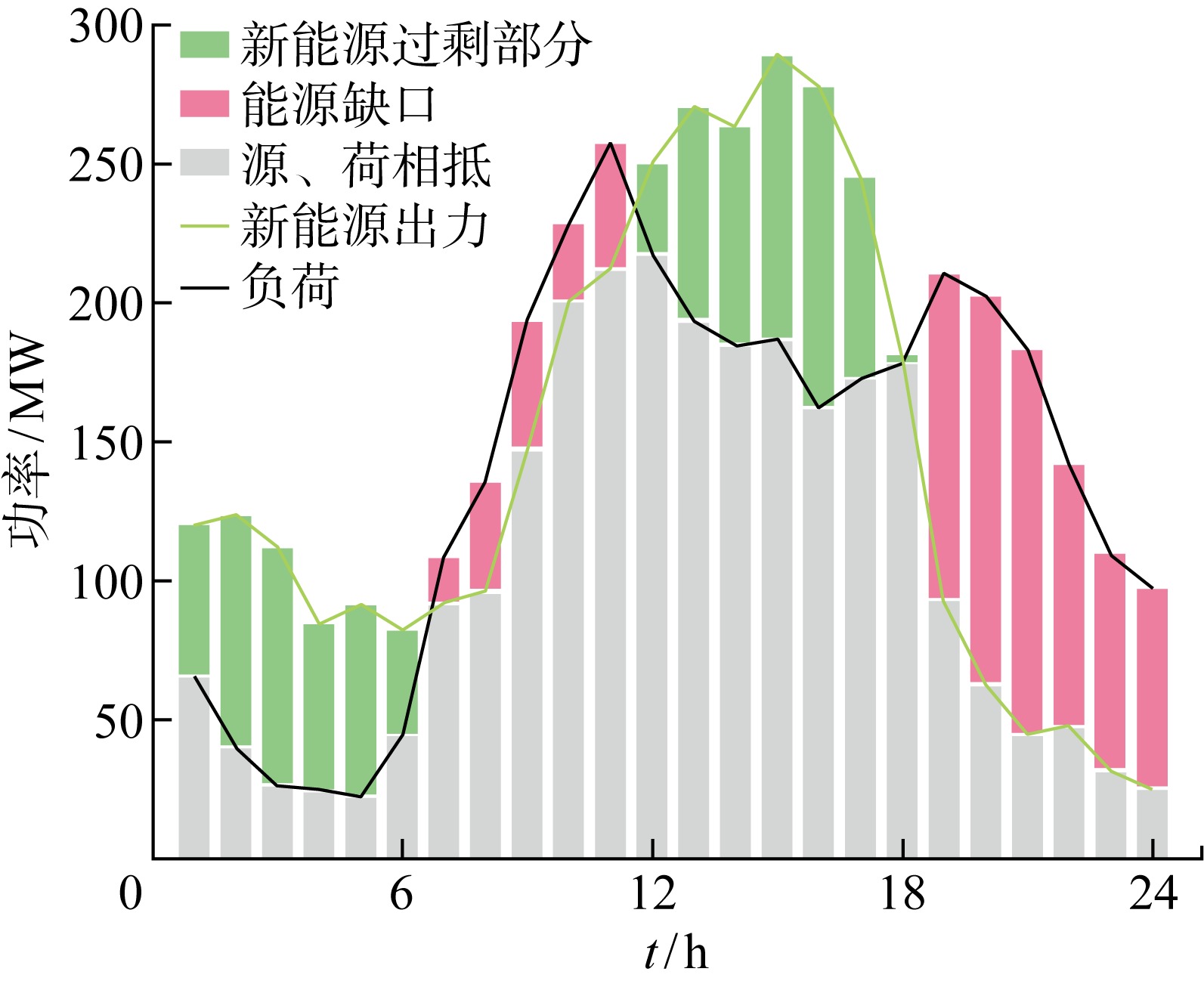 | 图3 新能源发电站1最大出力、负荷1的功率需求及二者差额 |