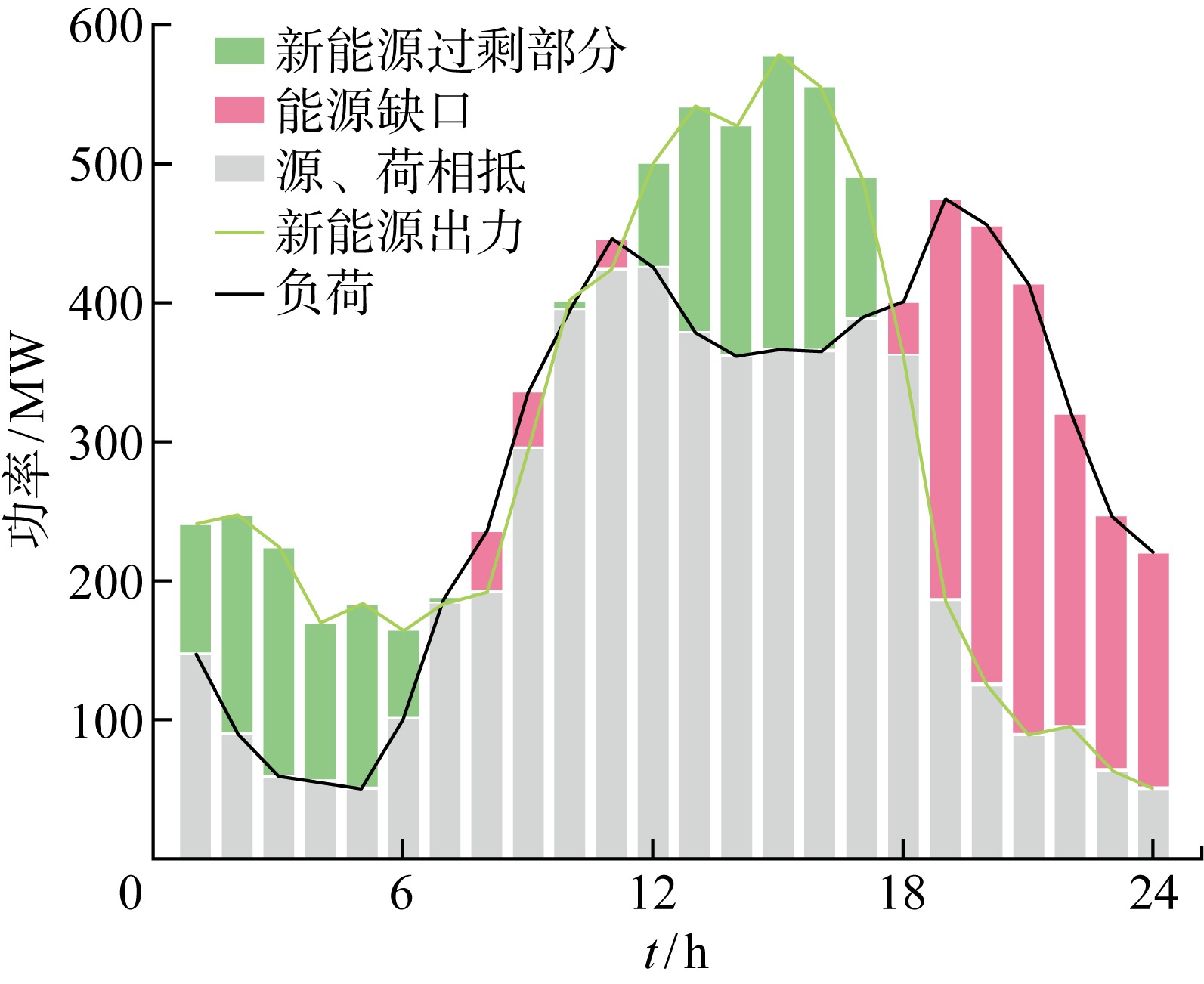| 图4 新能源发电站2最大出力、负荷2的功率需求及二者差额 |