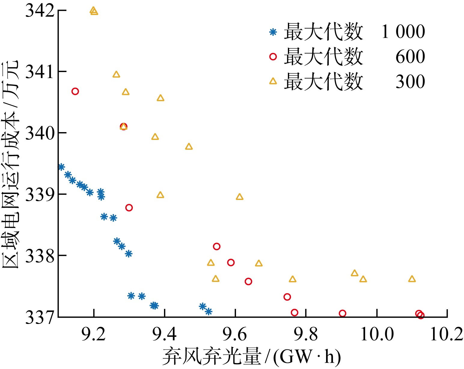 | Fig.5 Values of objective functions with different maximum generations |