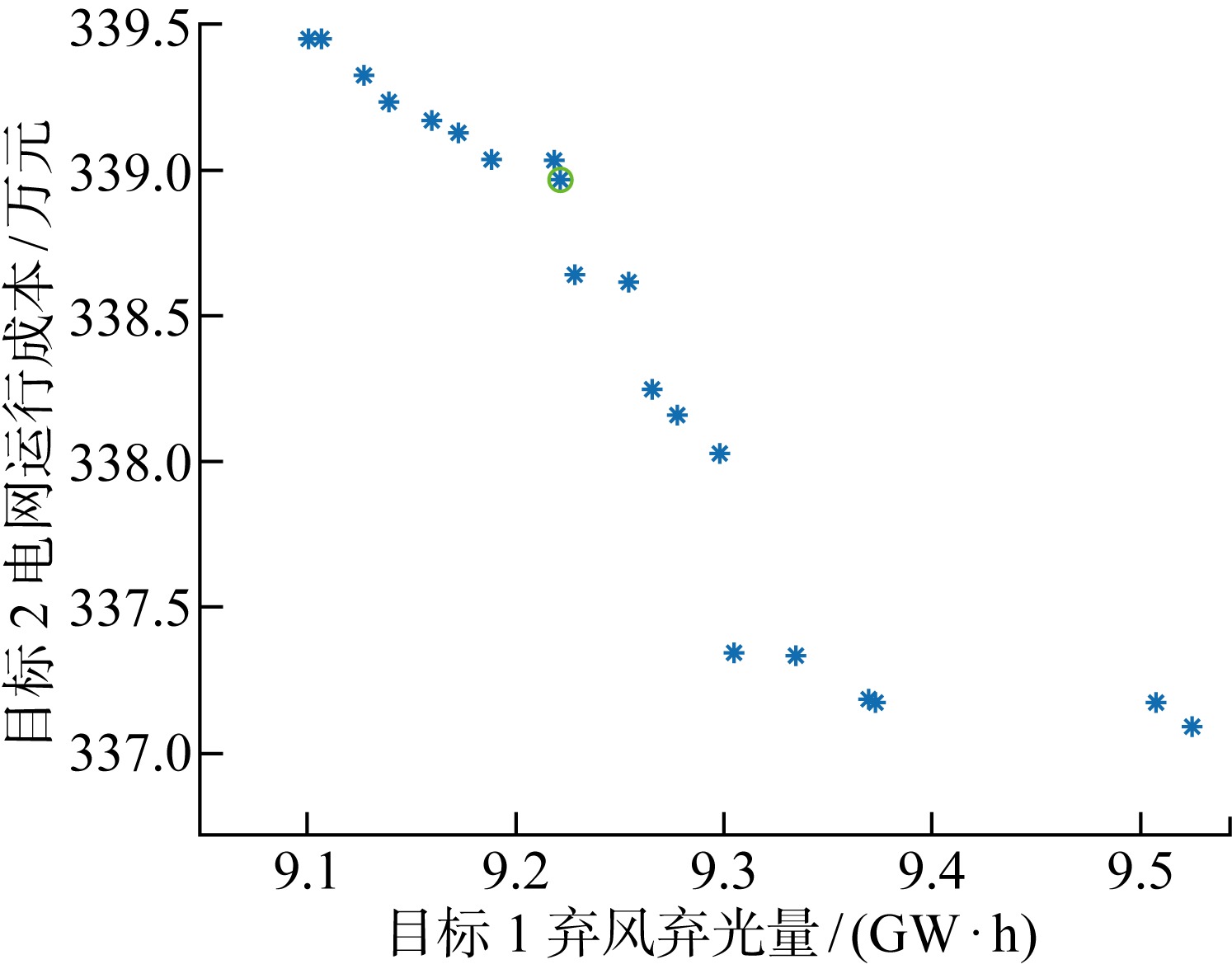 | 图6 双目标问题Pareto前沿曲线 |