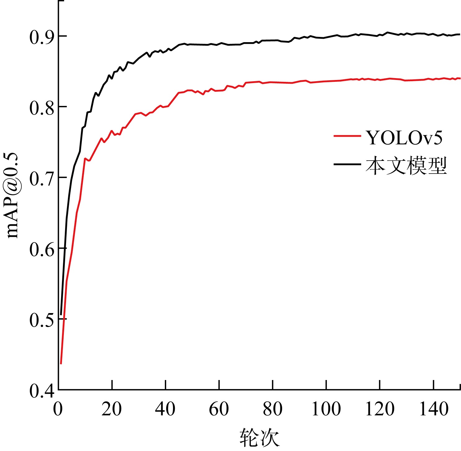 | 图13 本文模型与YOLOv5模型mAP@50%对比 |