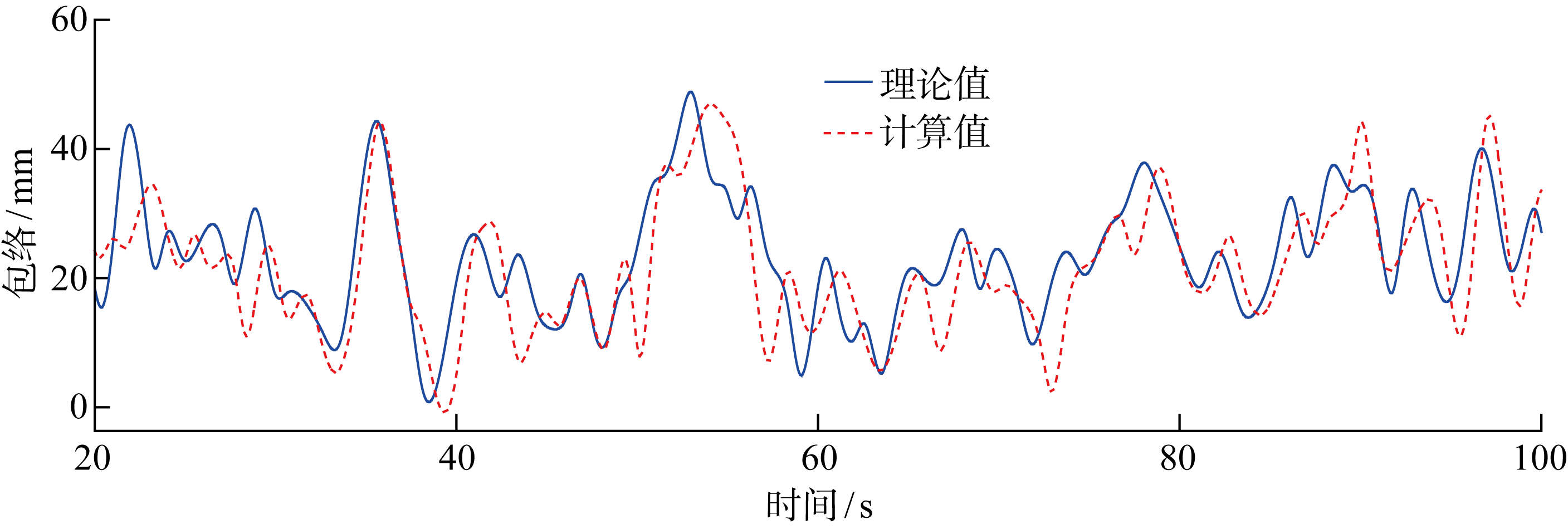 | 图12 数值模拟不规则波群波包线与理论波包线对比(GFH=0.6,GLF=15) |