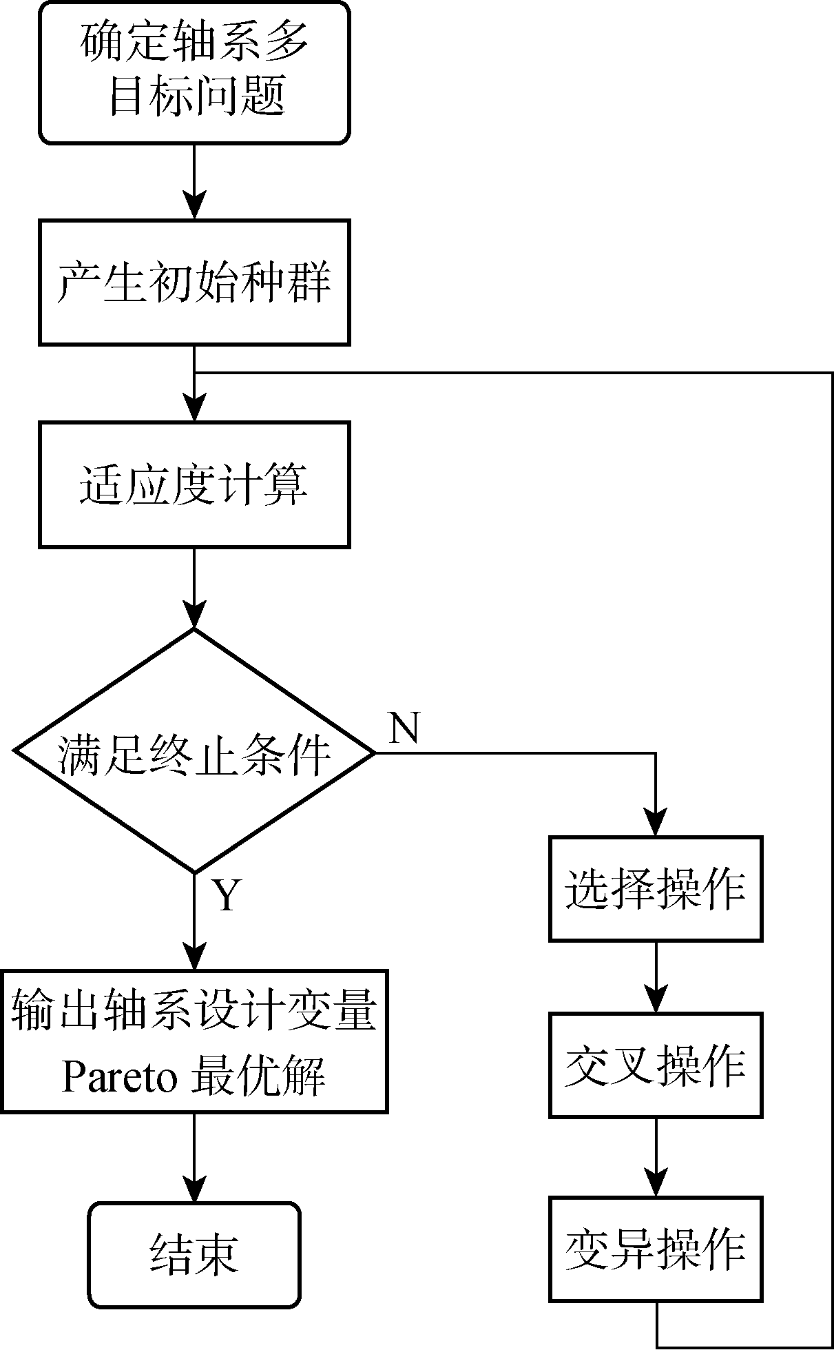 | Fig.3 Flow chart of multi-objective GA for propulsion shafting |