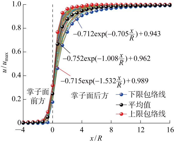 开挖速度小于判别速度则对应的位移释放系数受空间效应影响显著,同时相应的曲线均在工况9-3曲线的上方,各曲线的集中度较高,因此可直接借助包络线以及对应的平均值进行预测,如图14 所示.