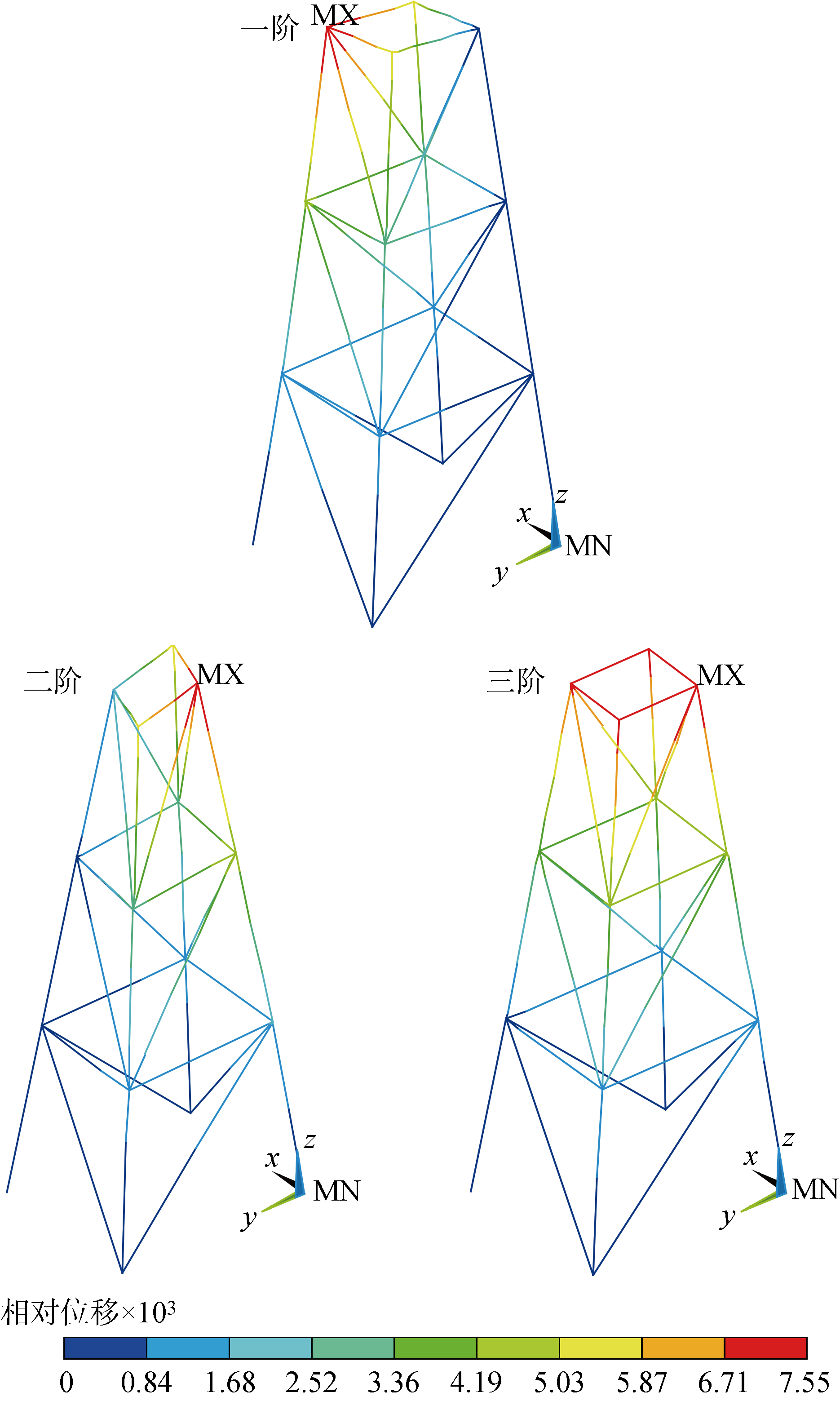 | Fig.2 The first three modals of intact model |