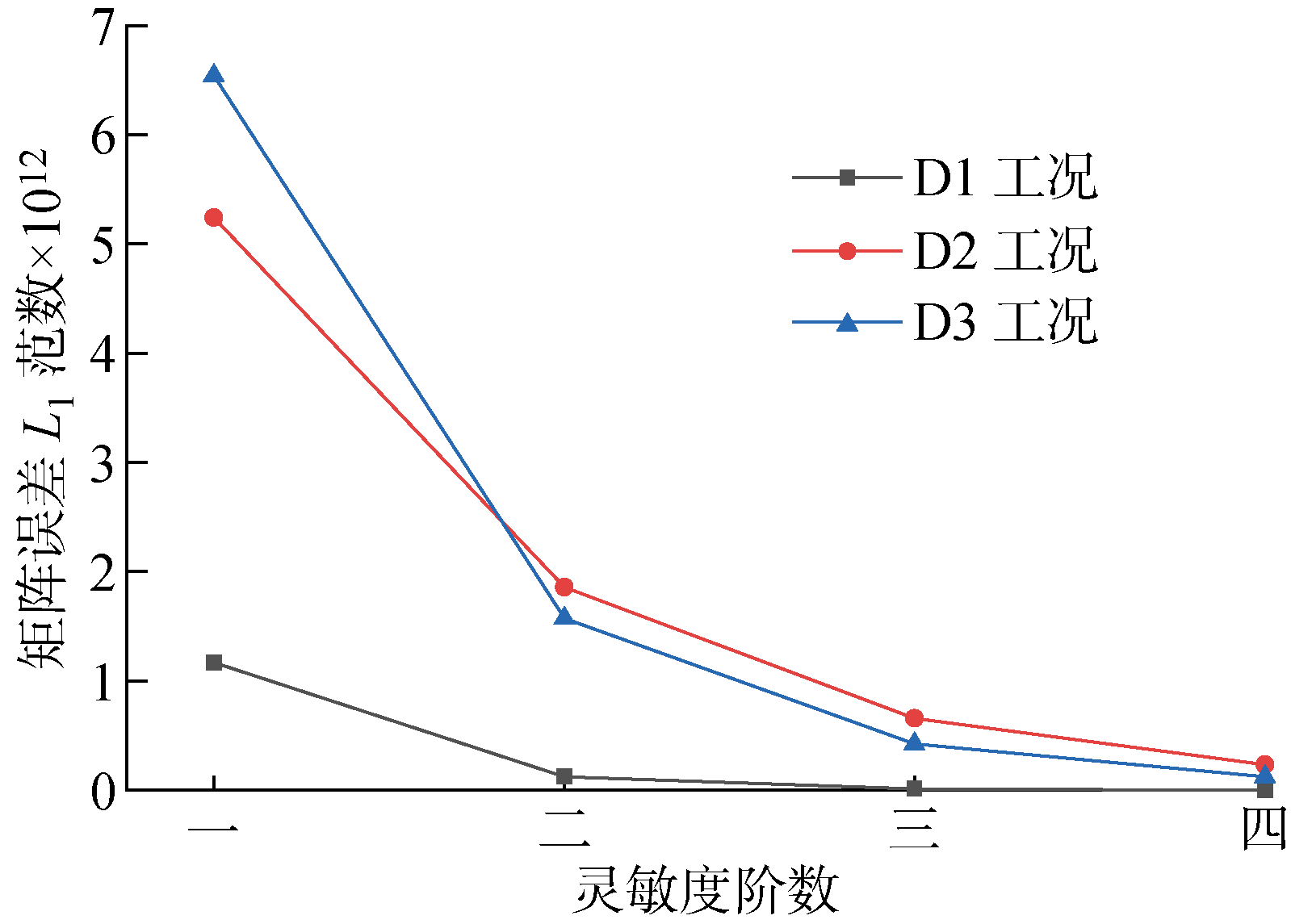 | 图3 广义柔度矩阵改变量随灵敏度阶数的误差规律 |