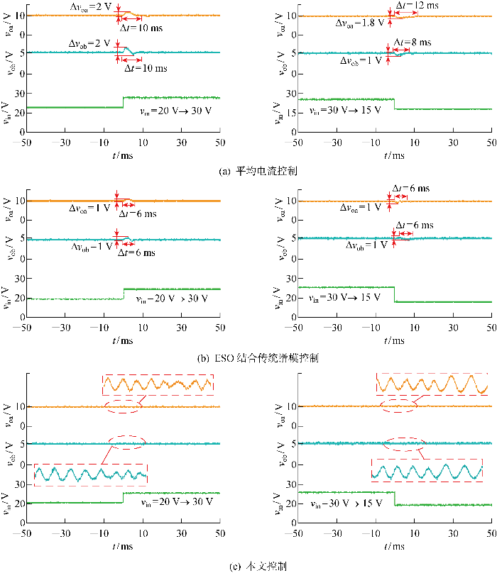 ... 有学者针对CI-SIDO变换器相关特性以及工作模式进行分析[12 -14 ] .然而,耦合电感使两输出支路存在耦合效应,造成输出支路间的交叉影响,具体表现为当一条支路的电感电流发生变化时,耦合电感的存在使得另一输出支路的能量发生变化,影响系统的动态性能.因此,实现CI-SIDO开关变换器的解耦,抑制输出支路间的交叉影响成为国内外研究的热点.文献[15 ]中采用对角化解耦,设计电压型解耦控制,实现CI-SIDO Buck变换器输出支路间的解耦,抑制了交叉影响,但未解决耦合效应对动态性能的影响.文献[16 ]中采用平均电流解耦控制,设计电流控制器实现CI-SIDO Buck变换器输出支路间的解耦,有效地抑制了输出支路间的交叉影响,提升了系统的动态性能.文献[17 ]中采用峰值电流解耦控制,抑制CI-SIDO Buck变换器和CI-SIDO Boost变换器的交叉影响的同时也提高了系统的动态性能.文献[18 ]中通过逆动力精确线性化解耦,将CI-SIDO Buck变换器分解为两个伪线性子系统,从模型上实现系统的解耦,并采用自适应滑模控制提高了系统动态性能.以上研究对提高CI-SIDO变换器的动态性能及抑制交叉影响有较好的作用,但这些控制以小信号数学模型为基础,采用对角化和逆动力学进行解耦,解耦整体设计过程复杂,过于依赖变换器精确模型,并未对未建模部分进行处理. ...