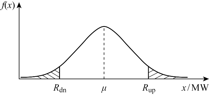 式中:Pwind,t为风电实际功率;Pwpre,t为风电预测功率;β1、β2分别为根据风电预测误差概率分布函数确定的置信水平,β1=0.95,β2=0.95;E表示期望值.