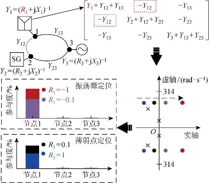若已知系统的节点导纳矩阵Y node (s ),则系统的振荡稳定性可由节点导纳矩阵Y node (s )行列式的零点进行评估,即