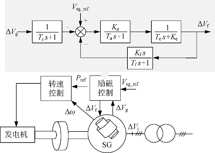 由励磁控制可知,同步发电机的励磁电压ΔV f 与机端电压ΔV g 关系如下: