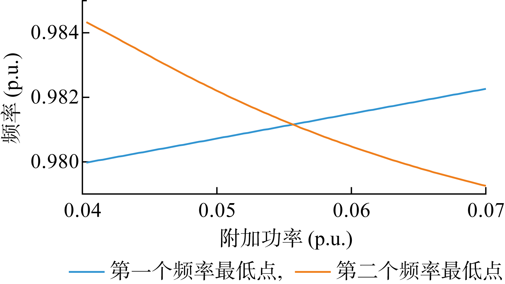 | 图4 附加功率变化时的频率最低点 |