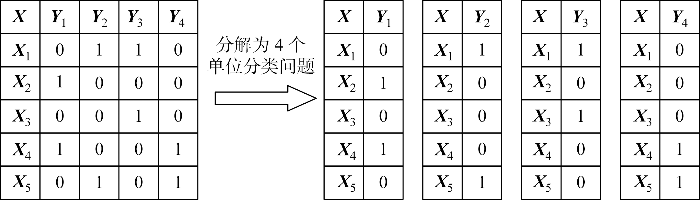实际应用中,某类用能服务所关联的需求特征标签可能并不唯一,因此用户可能对多种服务都具有潜在需求.多标签分类的学习模型如下:F= {f1, f2, …, fd}表示多标签数据d维特征,L= {l1, l2, …, lq}表示给定的标签信息[20].设特征空间为X=[X1X2 … Xn]∈Rn×d表示n个样例d维特征的特征空间,其中Xi表示第i个样本对应的特征向量,一个输入特征空间Xi由d维特征向量[Xi1Xi2 … Xid]构成.设标签空间为Y=[Y1Y2 … Yn] ∈Rn×q表示n个样例q个标签的标签空间,其中Yi表示第i个样本对应的标签向量,Yi是由d维特征向量[Yi1Yi2 … Yiq]构成的一个输出空间,即该数据集中有n个样本,d个特征, q个标签.用(Xi, Yi)表示一个样本,Xi= [Xi1Xi2 … Xid]表示输入向量,Y=[Yi1Yi2 … Yiq]表示输出向量,i ∈ {1, 2, …, n},设D表示训练集,D={(X1, Y1), …, (Xn, Yn)}.那么多标签学习任务的学习过程就是为了得到一个映射函数m:X→Y,对于任意标签未知的输入样本X',可以预测其对应的标签向量Y'.