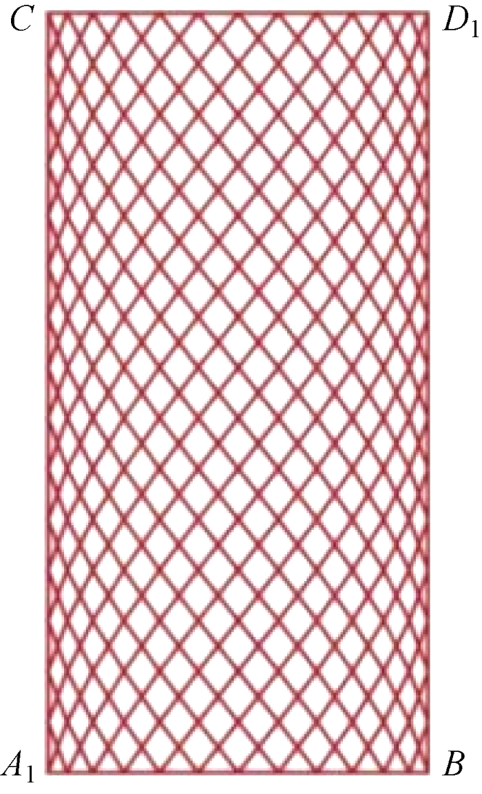 算例1 以图3所示的联方型单层柱面网壳为模型1.图中:A1C长60 m,跨度30 m,矢高10 m;A1C边网格数为15个.模型的支座在A1C边与BD1边的所有边界节点上.对模型整体施加0.3 kN/m2的恒荷载、0.5 kN/m2的活荷载和标准风压0.55 kN/m2,体型系数按回转面计算,地面粗糙度为B类,风振系数为1.5的风荷载.经对模型1进行满应力优化设计,结构杆件用钢量为35.42 t,该初步设计方案在自重+恒荷载+满布活荷载组合工况作用下且考虑材料非线性时的失稳荷载因子为1.43,不满足《空间网格结构技术规程: JGJ 7—2010》[12]的相关要求.采用局部加肋方案提高结构经济性与稳定性,对其分别采用单位长度的应变能密度准则与等效轴力准则下的属性值RM与RG进行渐进式拓扑优化设计.该算例用于比较两种准则对拓扑优化效果的影响,选出一种优化准则为其他算例使用.