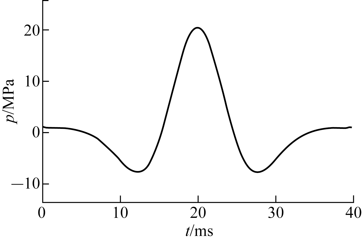 | Fig.6 Time history curve of simulated source pressure-ricker wavelet |