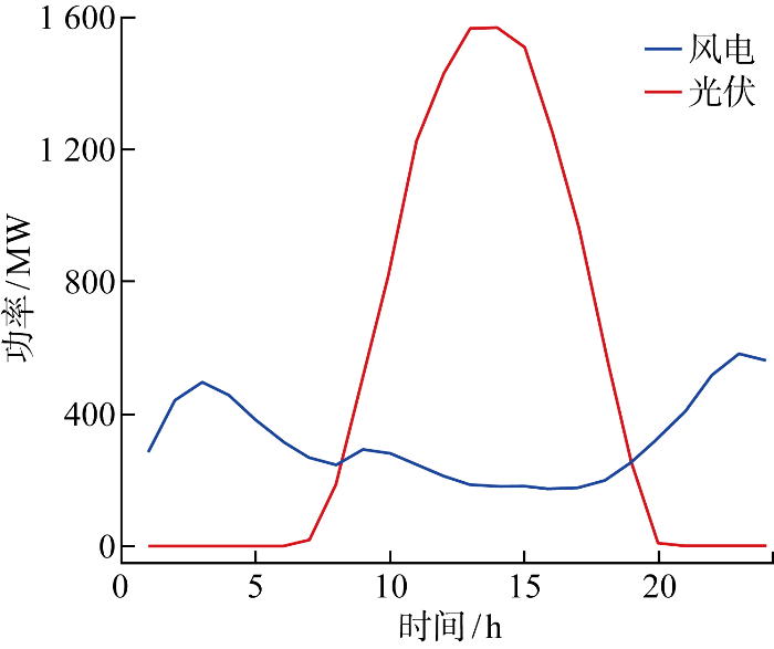 式中:P W t 为风电t 时刻的上网电量;P f o r e w 为风电的预测出力;P t P V 为光伏t 时刻的上网电量;P f o r e p v 为光伏的预测出力.