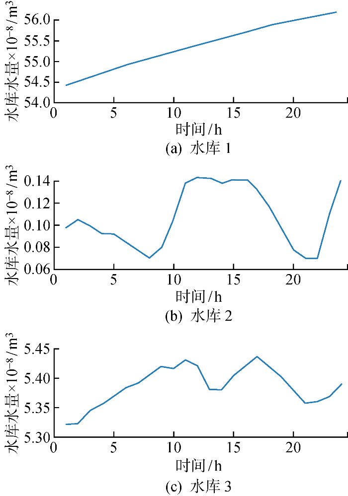 式中:P g , t P H S 、P p , t P H S 分别为抽蓄在t 时段的发电功率和抽水功率;h PHS 为抽蓄的净水头高度;q g , t P H S 、q p , t P H S 分别为t 时刻抽蓄的发电流量和抽水流量;η p 为抽蓄电能转水能的效率.