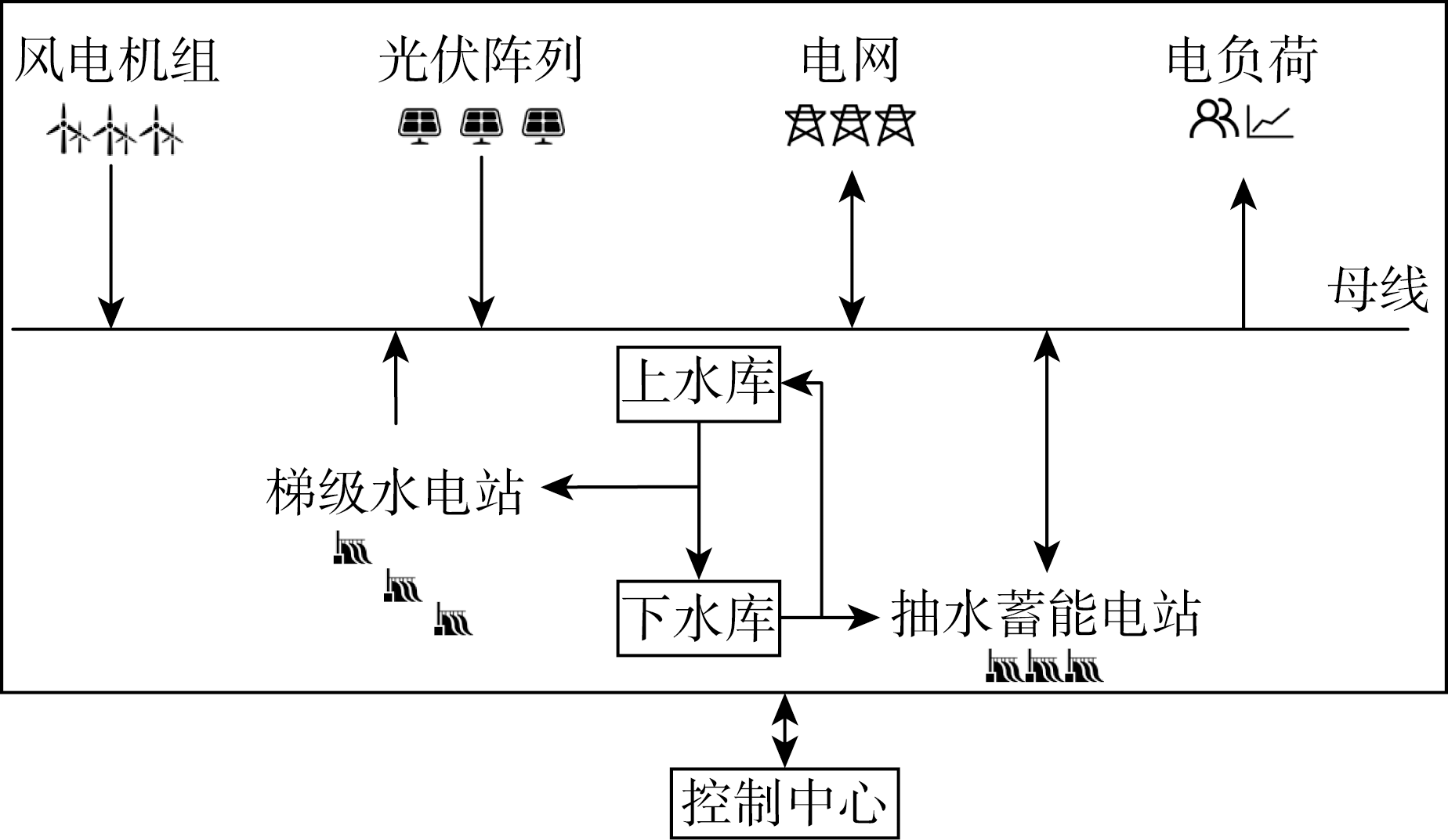 | Fig.1 Structure of cascade hydro-wind-solar-pumped storage system |