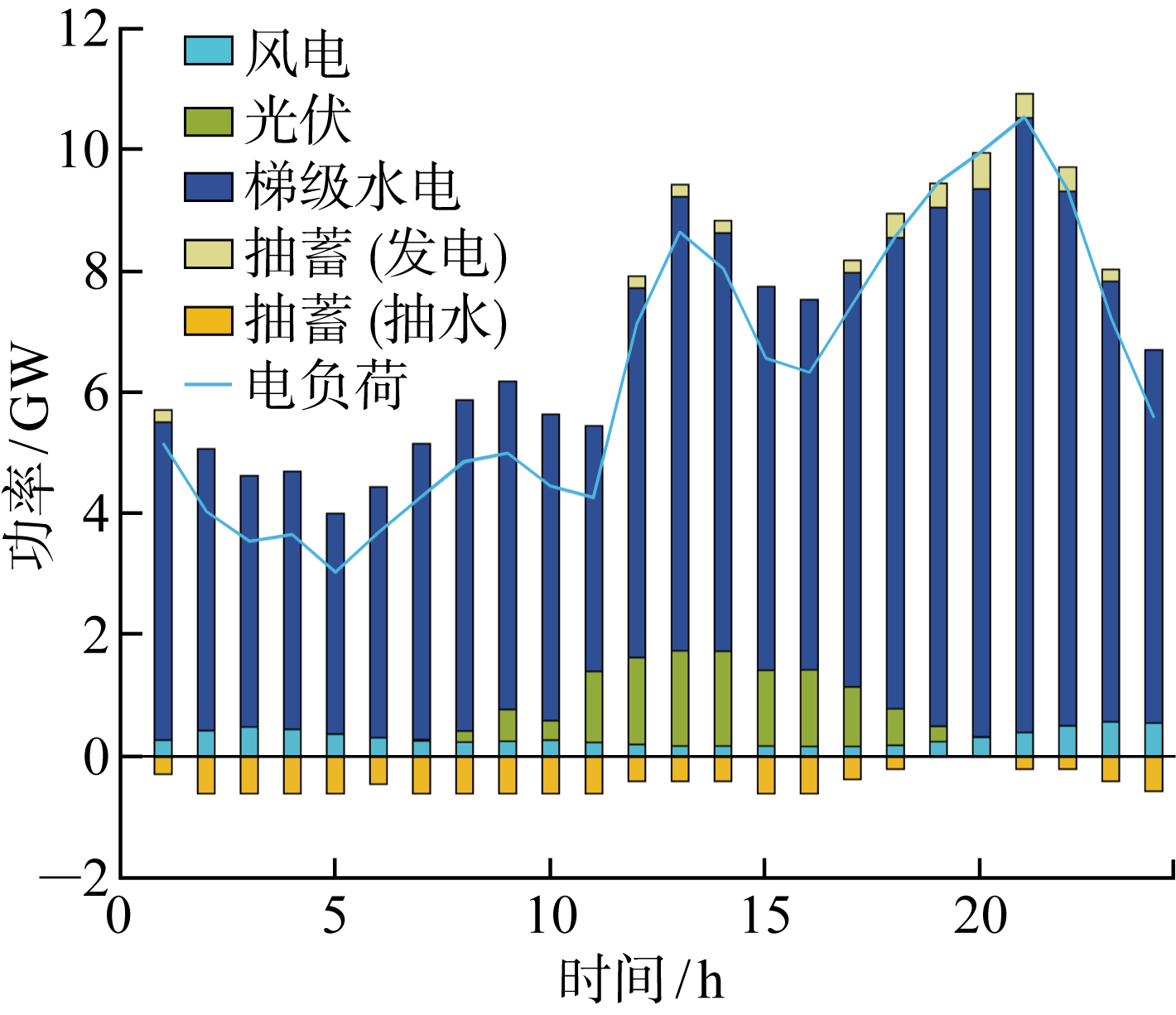 | 图8 考虑灵活调节能力的互补系统日前优化运行结果 |