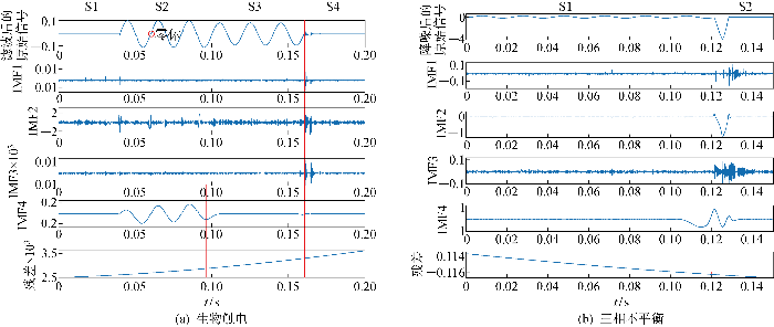 针对上述矛盾,现有文献主要考虑提取生物体触电特征[14],研发专门针对生物体触电的RCD.韩晓慧等[15]利用物理触电试验平台获取生物体触电和非生物体触电的剩余电流波形信号,统计其时域、频域特征参数,将特征指标输入给粒子群算法优化的支持向量机,实现不同类型触电事故的识别.王金丽等[16]利用试验平台获得剩余电流,并进行希尔伯特-黄变换(Hilbert-Huang transform,HHT)得到剩余电流的多个固有模态分量(intrinsic mode function,IMF)在时频域上的分布情况,发现高频的IMF分量幅值较小且相关系数较低,低频的IMF幅值较大且相关系数较高;通过观察实验所得Hilbert谱不同样本所得到的频率成分存在一定差异,将这些IMF分量信息转换成能量特征向量作为生物体触电故障分类模型的判断依据.关海鸥等[17]也对剩余电流进行HHT操作,发现在发生生物体触电的时刻,IMF中相关系数最大的分量幅值会发生局部激增,且该IMF分量与原信号的相关系数较高,由此提出基于HHT的生物体触电电流检测模型.李春兰等[18]利用循环功率谱分析获得触电前、后剩余电流信号的循环功率谱三维图,并且定义了4种循环谱特征指标,再利用K均值聚类分析提出触电识别判据.上述研究聚焦触电电流特征提取,但这些特征是否能分区负荷投切或三相负荷不平衡产生的短时不平衡电流与生物体触电时的剩余电流,有待进一步研究.