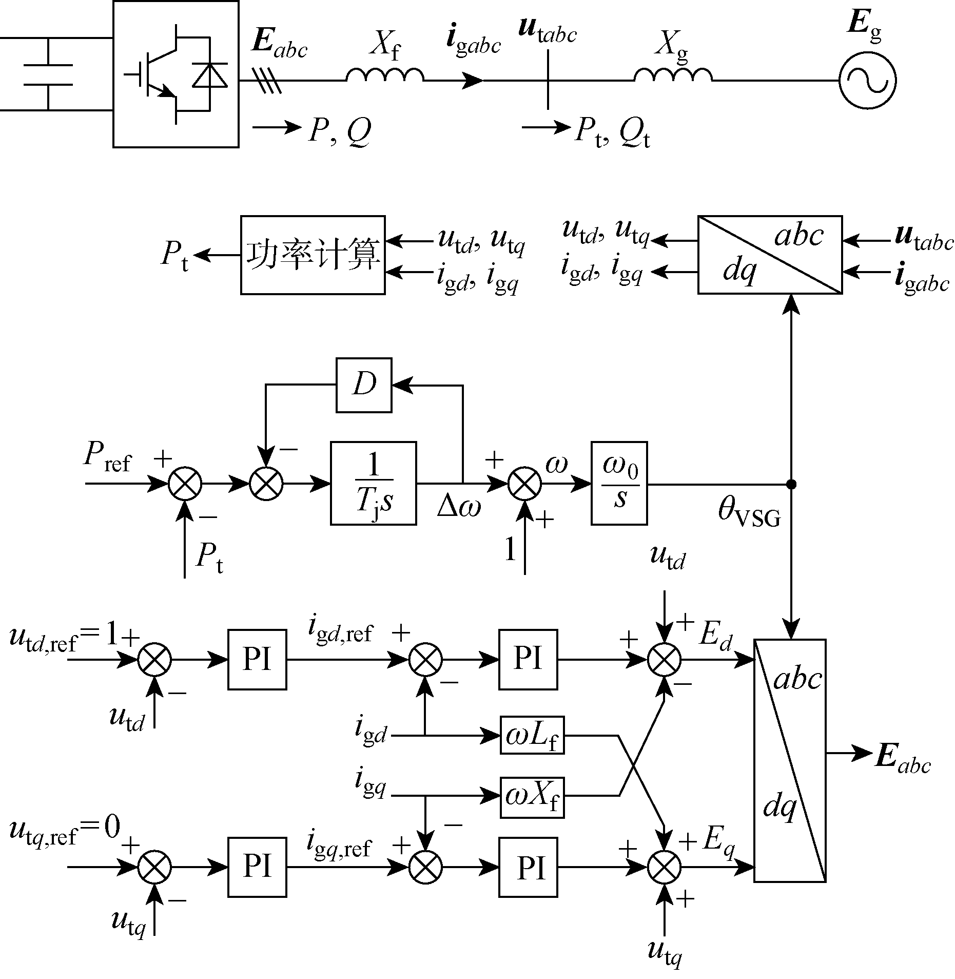 | 图1 电压电流双环控制构网型VSC结构 |