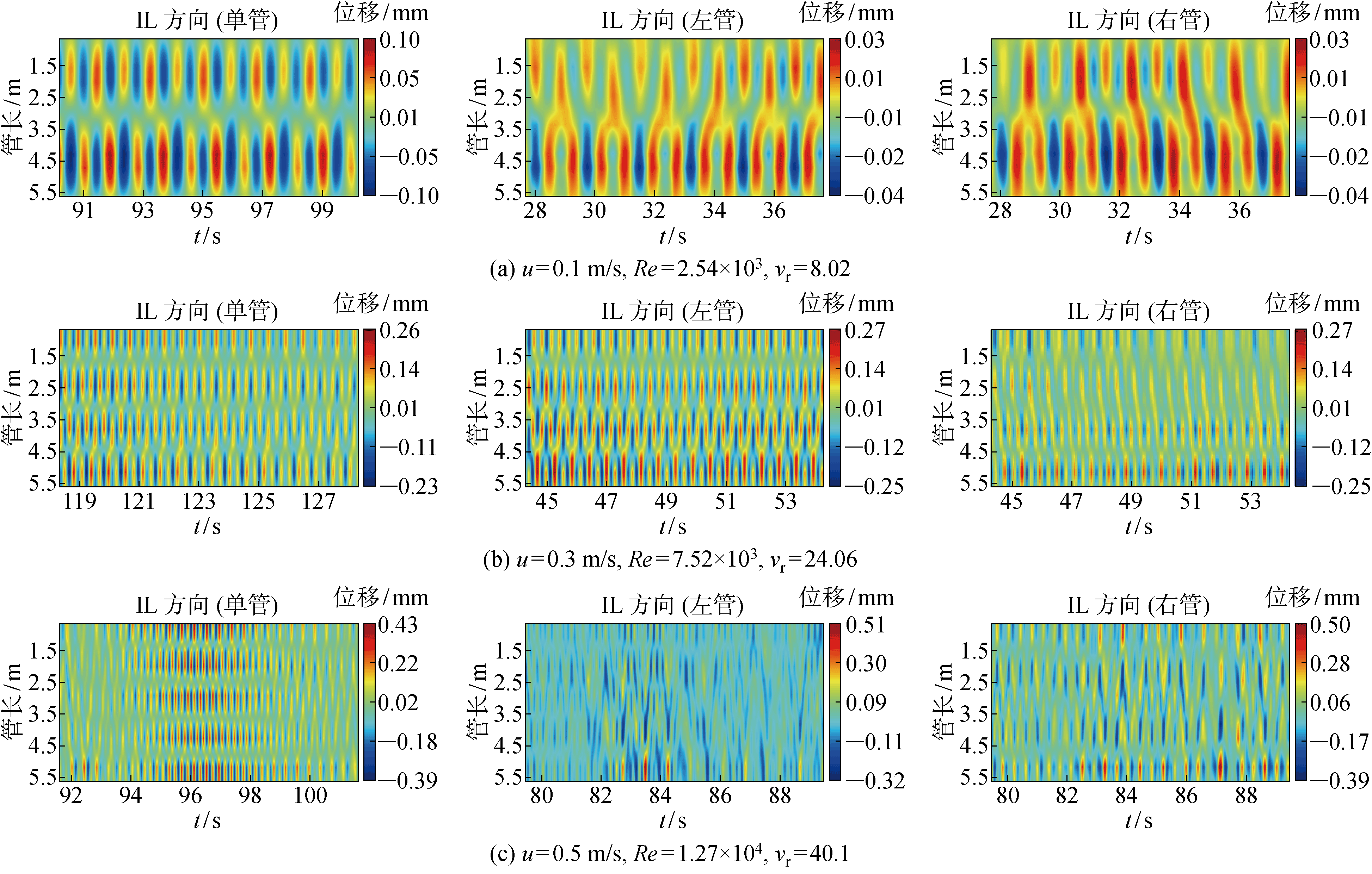 | 图14 悬垂单管与悬垂双管IL方向应变信息时空分布图 |