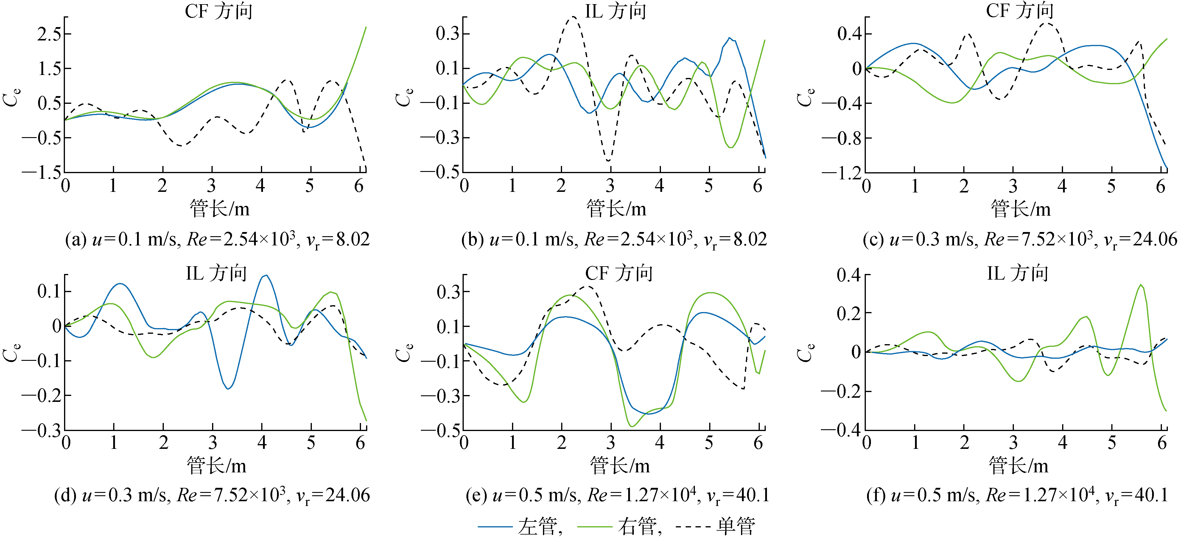 | 图19 悬垂单管与悬垂双管CF和IL方向Ce轴向分布图 |