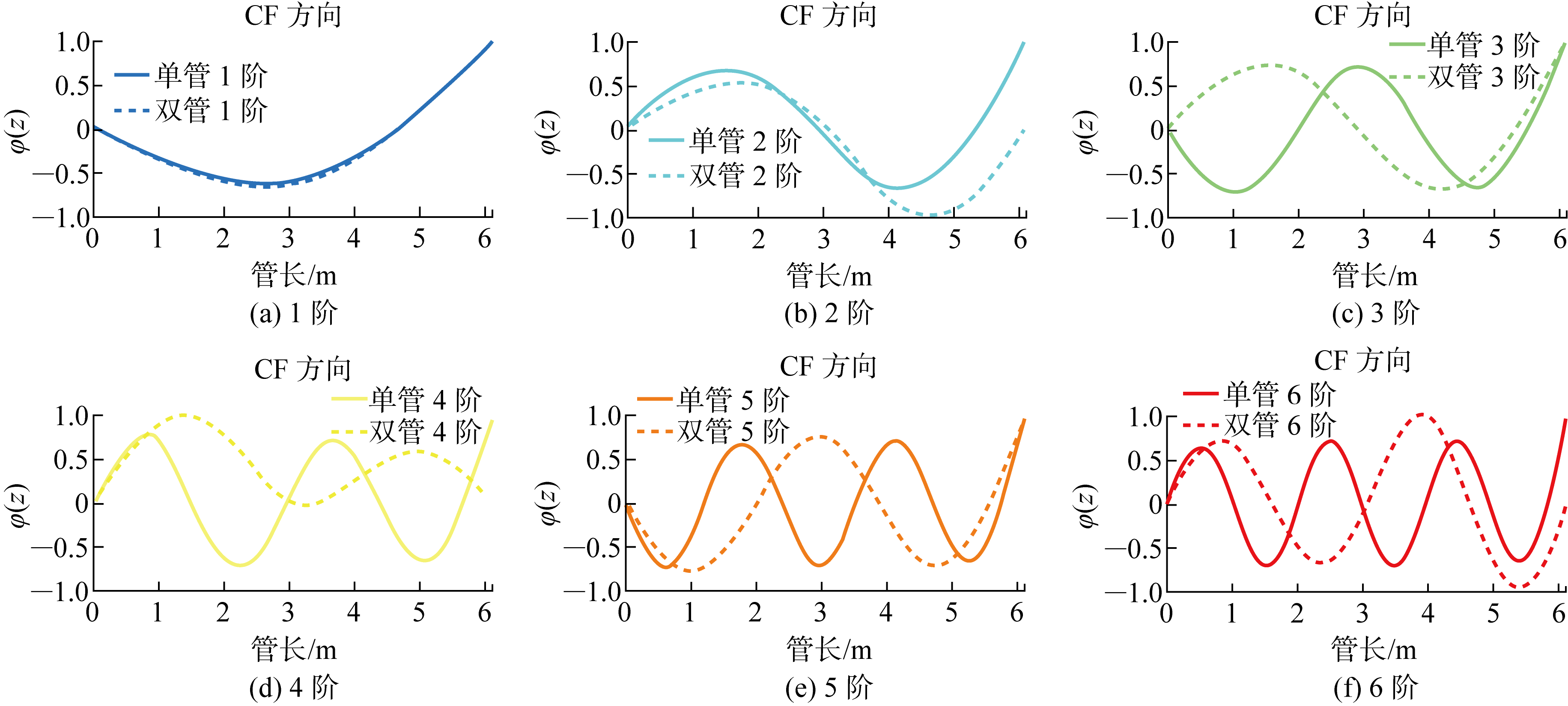 | Fig.9 Mode shape of single pipe and double pipes in CF direction |