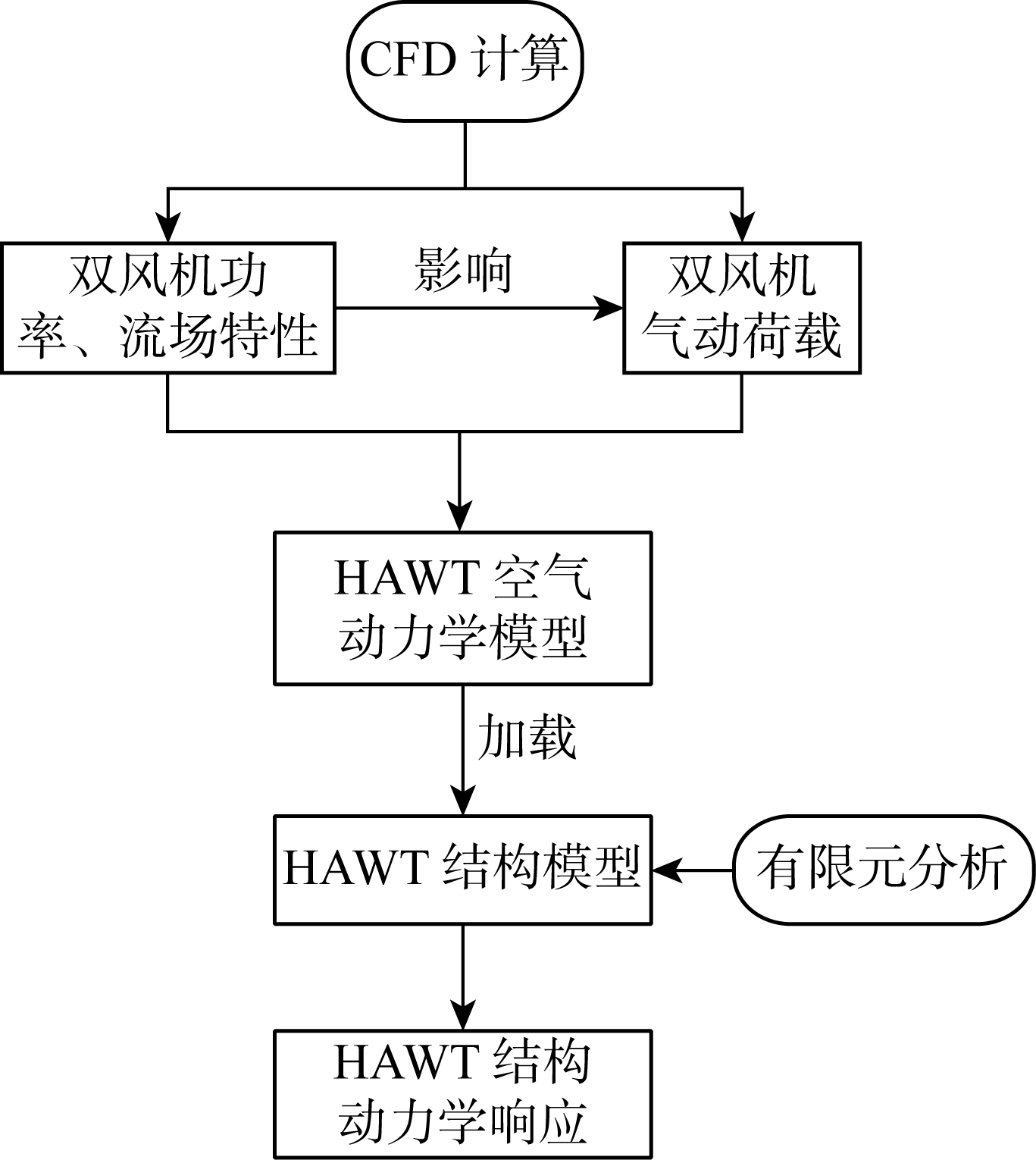 | 图1 水平轴双风力机结构动力响应分析技术路线图 |