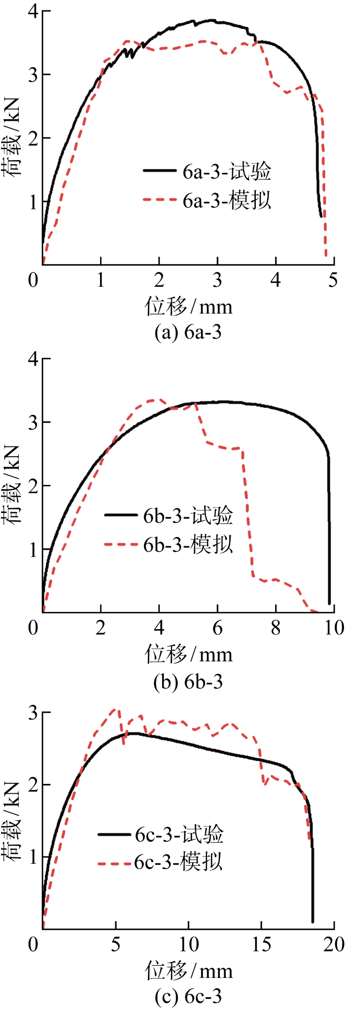 模型6a-3不同交错程度有限元模型的荷载-位移曲线
