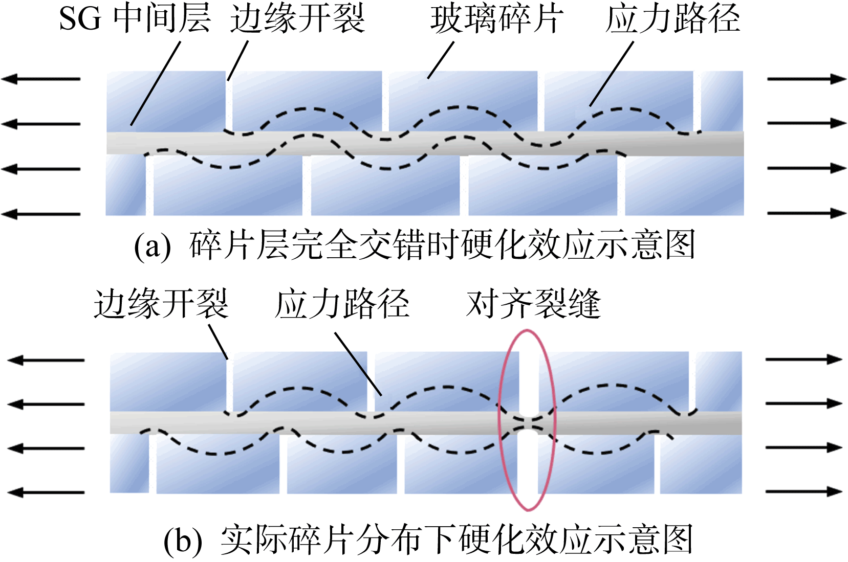 裂纹形态对SG夹层玻璃开裂后硬化效应的影响机制 |