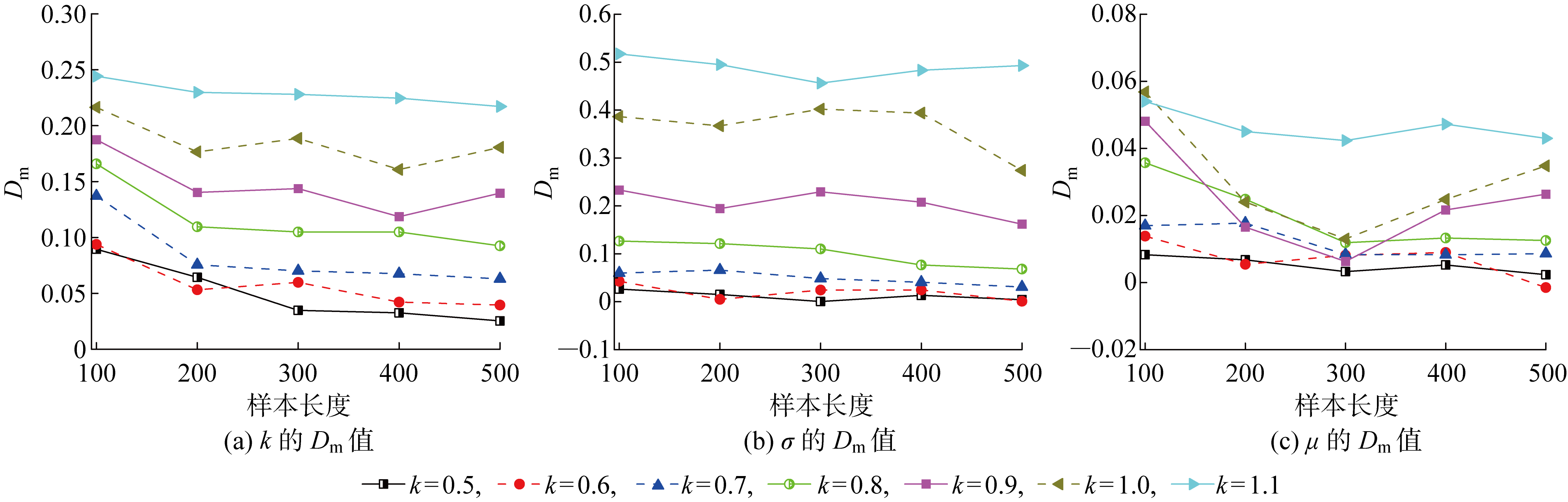 | 图3 不同k值下分布参数的Dm值 |