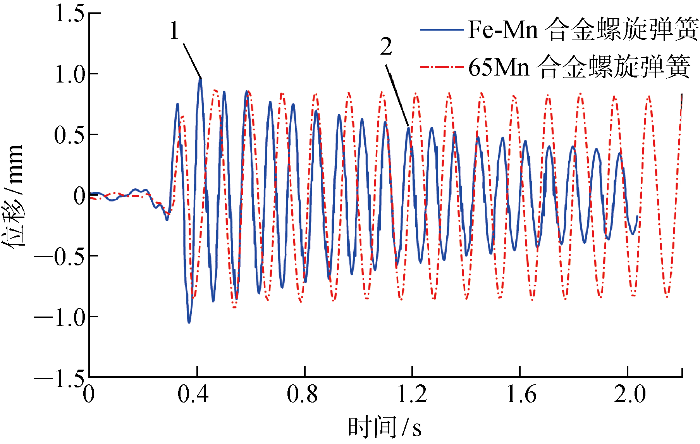 Fe-Mn和65Mn合金螺旋弹簧的位移时程曲线