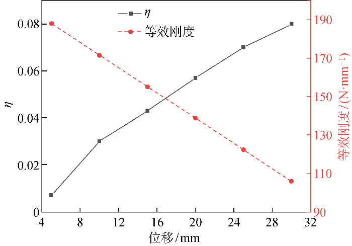 结果表明,损耗因子随着变形量的增加呈指数增长,而等效刚度随位移的增加而线下降低,表现出明显的软化特性.