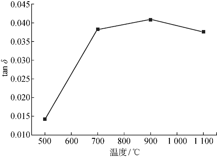 1×10-3应变幅下损耗因子与热处理温度的关系